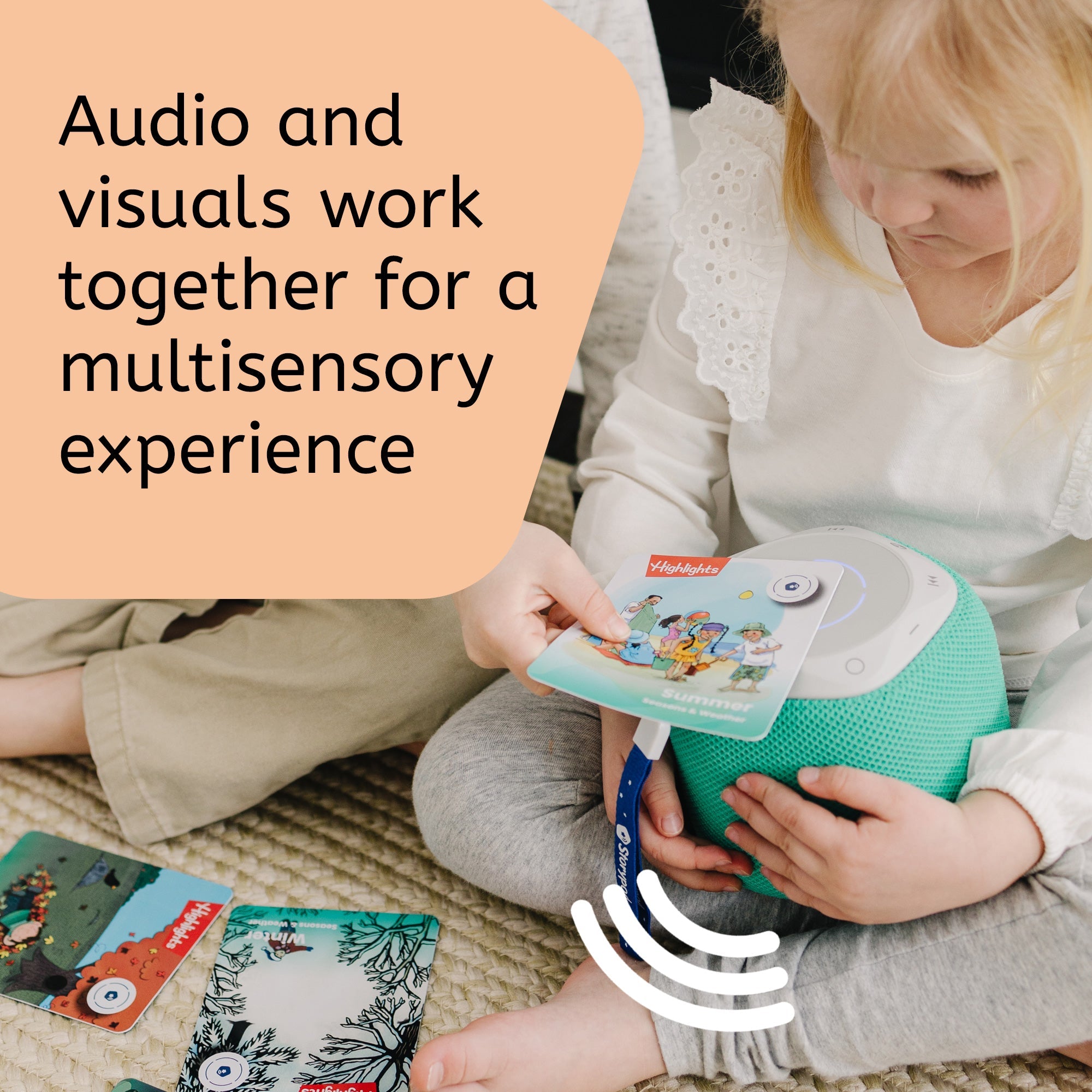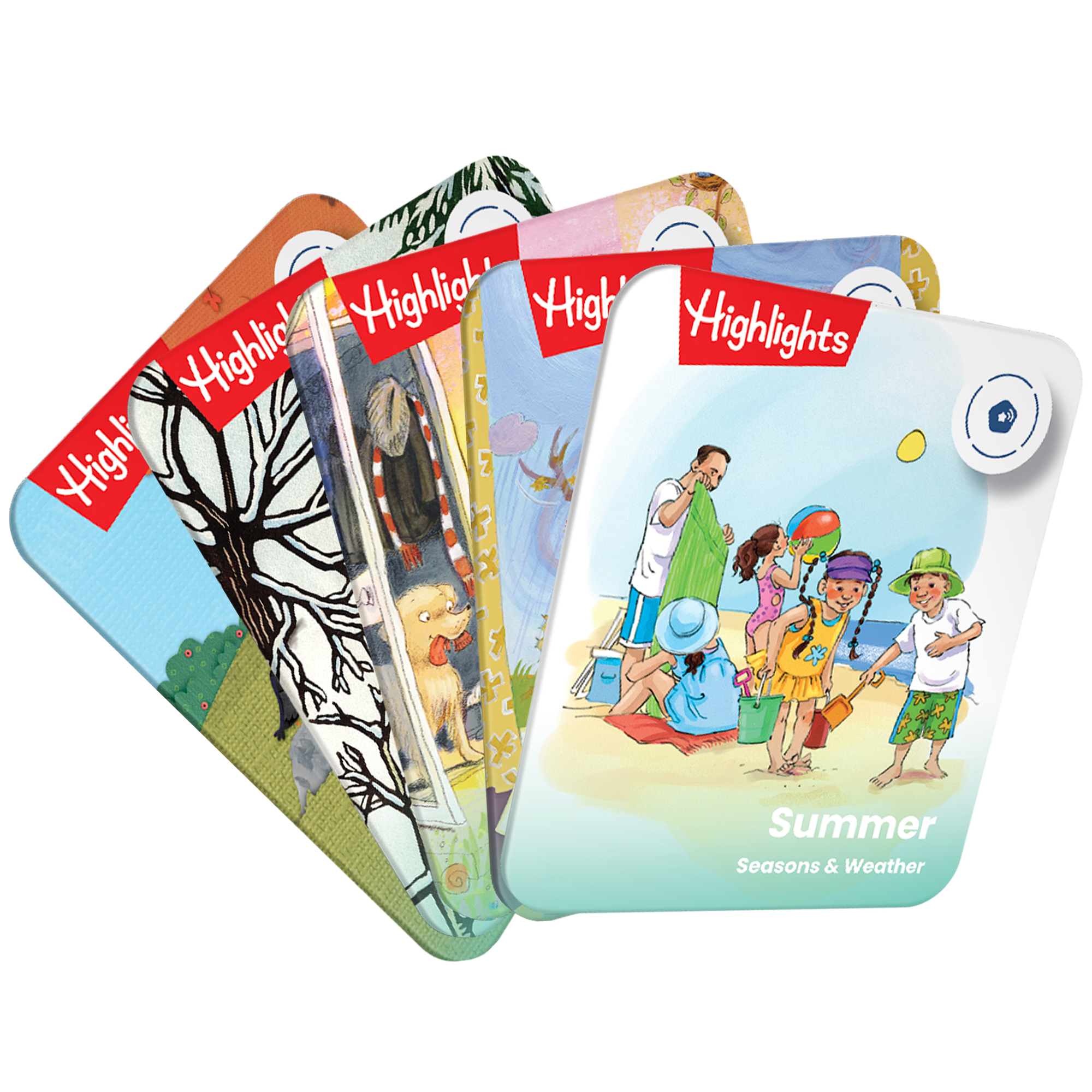 In collaboration with Highlights, Storypod’s Seasons & Weather cards teach children about the four seasons through poems, stories, facts, questions, jokes, movement, and games. Children also learn about stormy weather to help lessen fears of scary weather. By simply tapping each card on a Storypod, your child will unlock an educational experience that will exercise their minds and promote a love of learning!