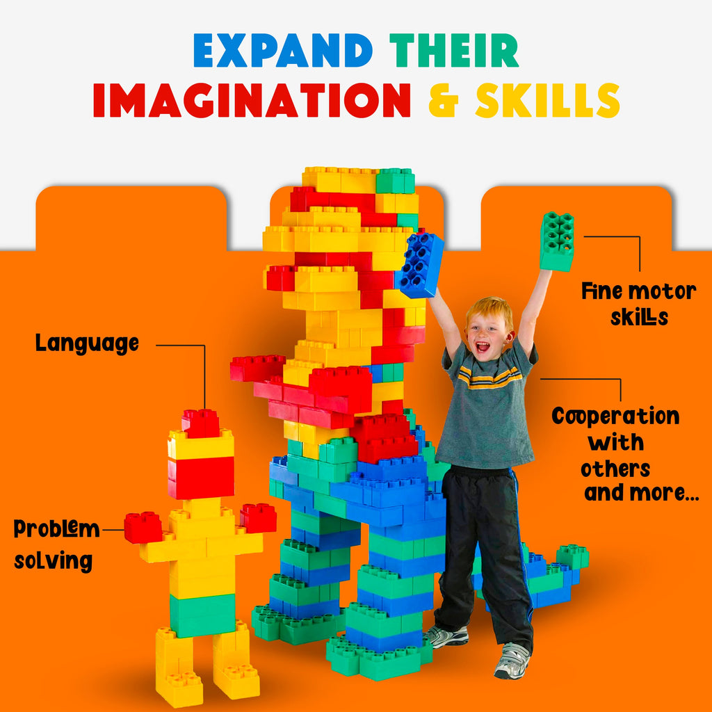 Our set includes a variety of large blocks and jumbo building blocks, ideal for younger children, including toddlers ages 3+, who can safely enjoy the fun. These blocks are more than just toys; they are powerful tools for learning and development, supporting STEM education through hands-on play. Unlike ordinary cardboard blocks for kids jumbo or jumbo foam blocks, our durable plastic blocks are made to last, providing a sturdy and safe option for all types of creative construction.