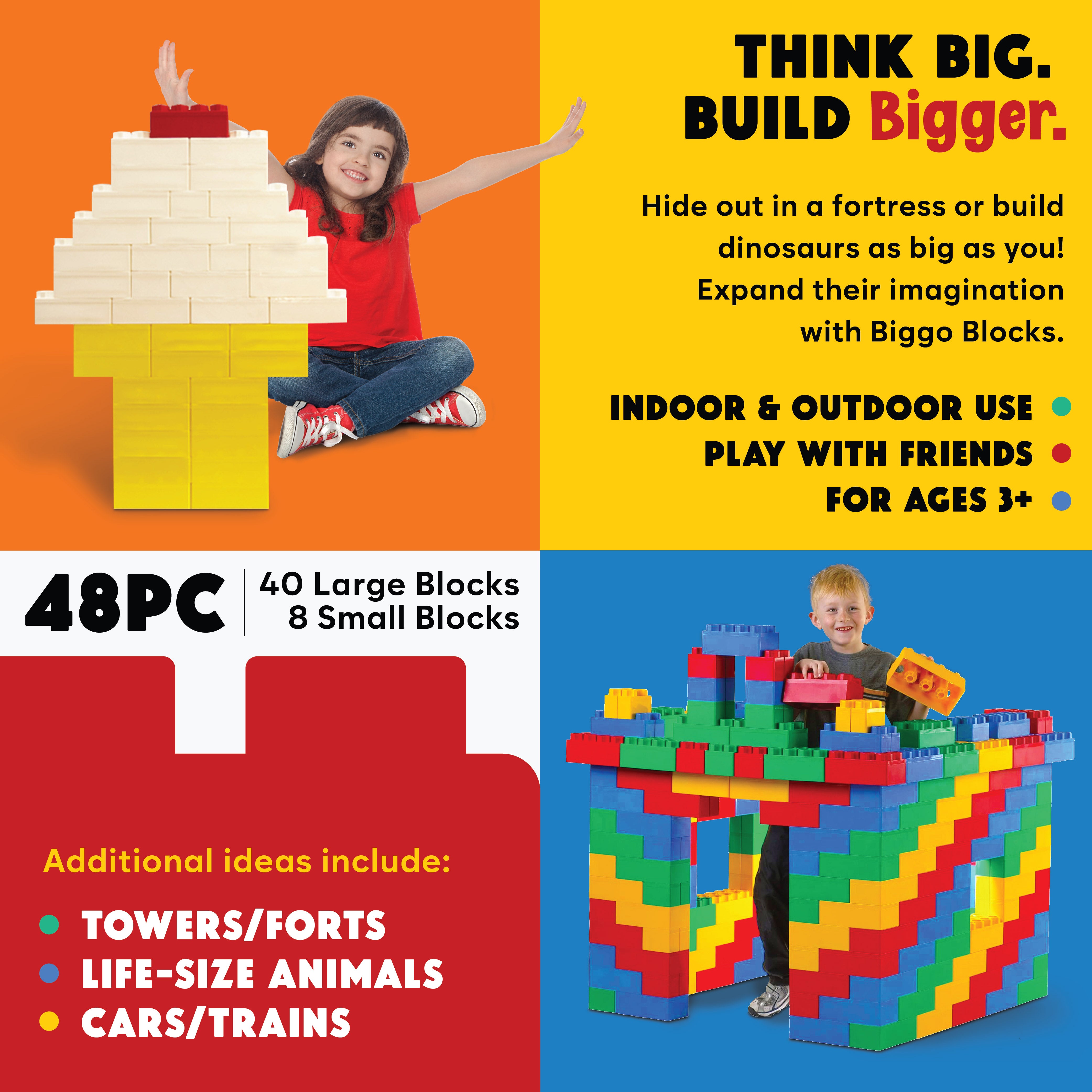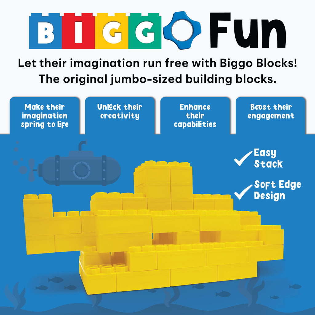 Unleash Limitless Creativity with our Biggo Blocks! Perfect for kids ages 4-8, these yellow big building blocks are designed to inspire and educate. Crafted for both indoor and outdoor use, our jumbo blocks offer endless possibilities. Whether building playful yellow animals, fantastic yellow construction vehicles and taxis, majestic yellow castles, futuristic yellow robots, scary yellow monsters, or sleek yellow race cars with our giant building blocks, children can explore and grow while playing!