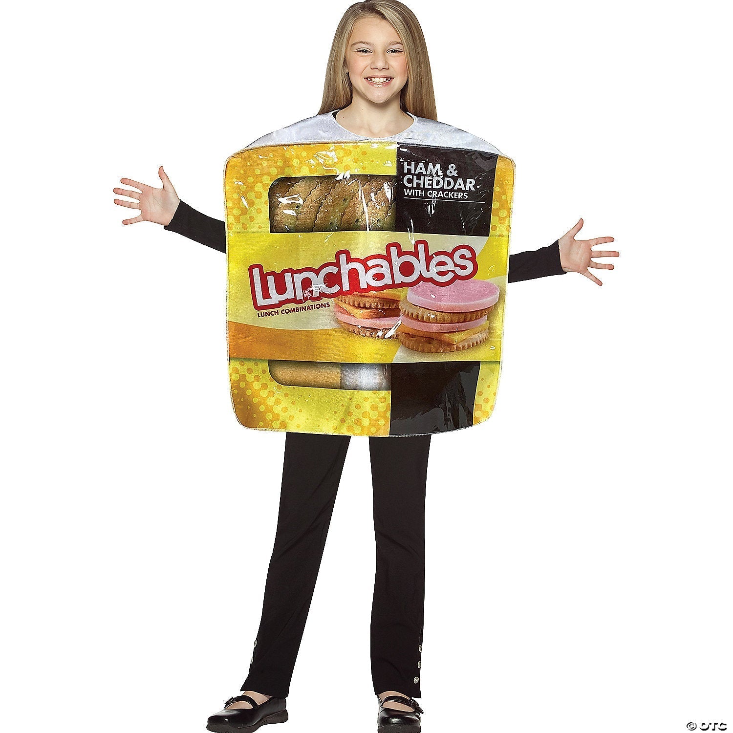 Transform your child into a walking Lunchables with this Kids Kraft Lunchables Costume! Perfect for Halloween or dress-up playtime, this fun costume will have your little one standing out and ready to play. No assembly required, just pure cheesy goodness (without the mess)!