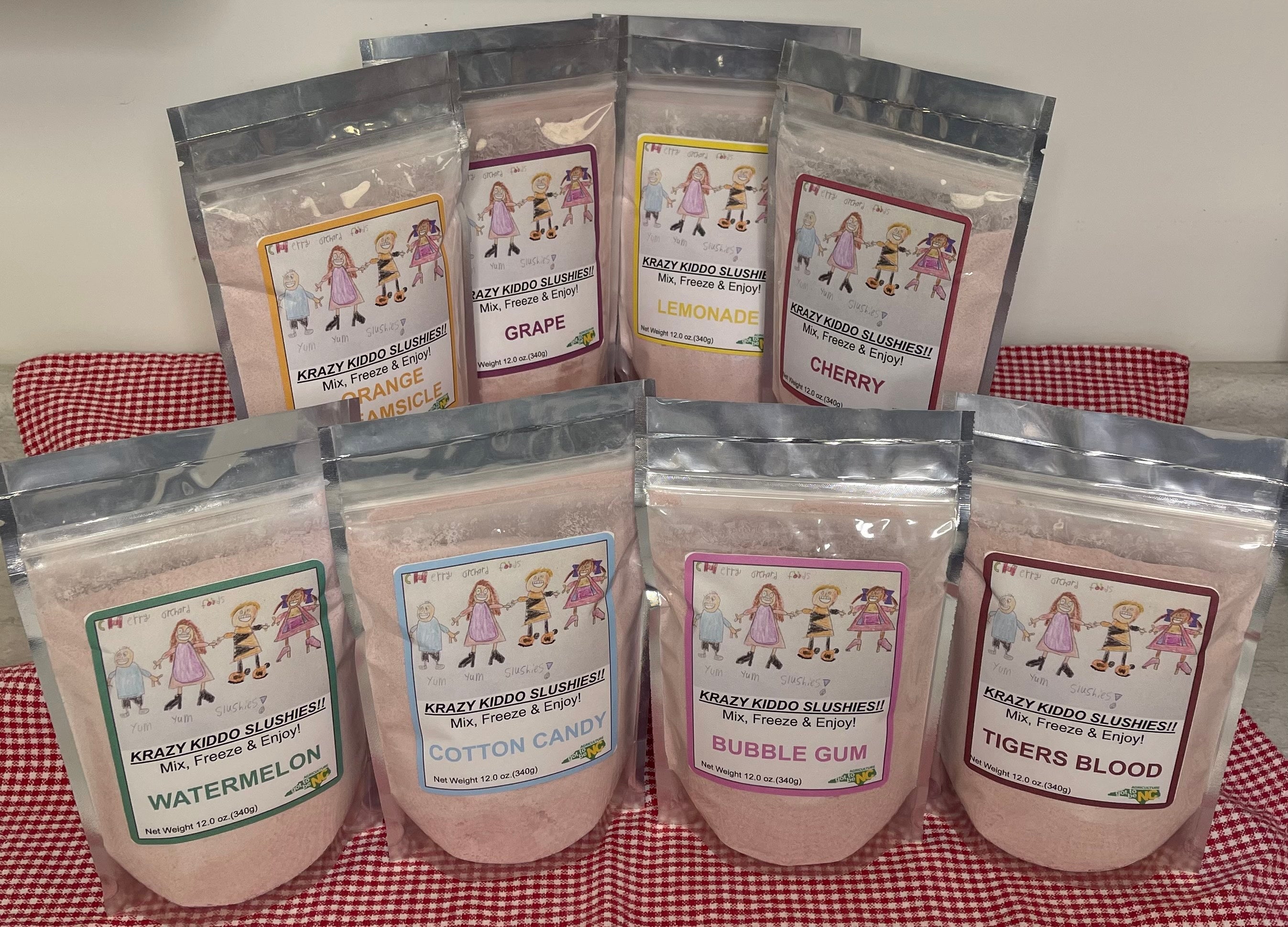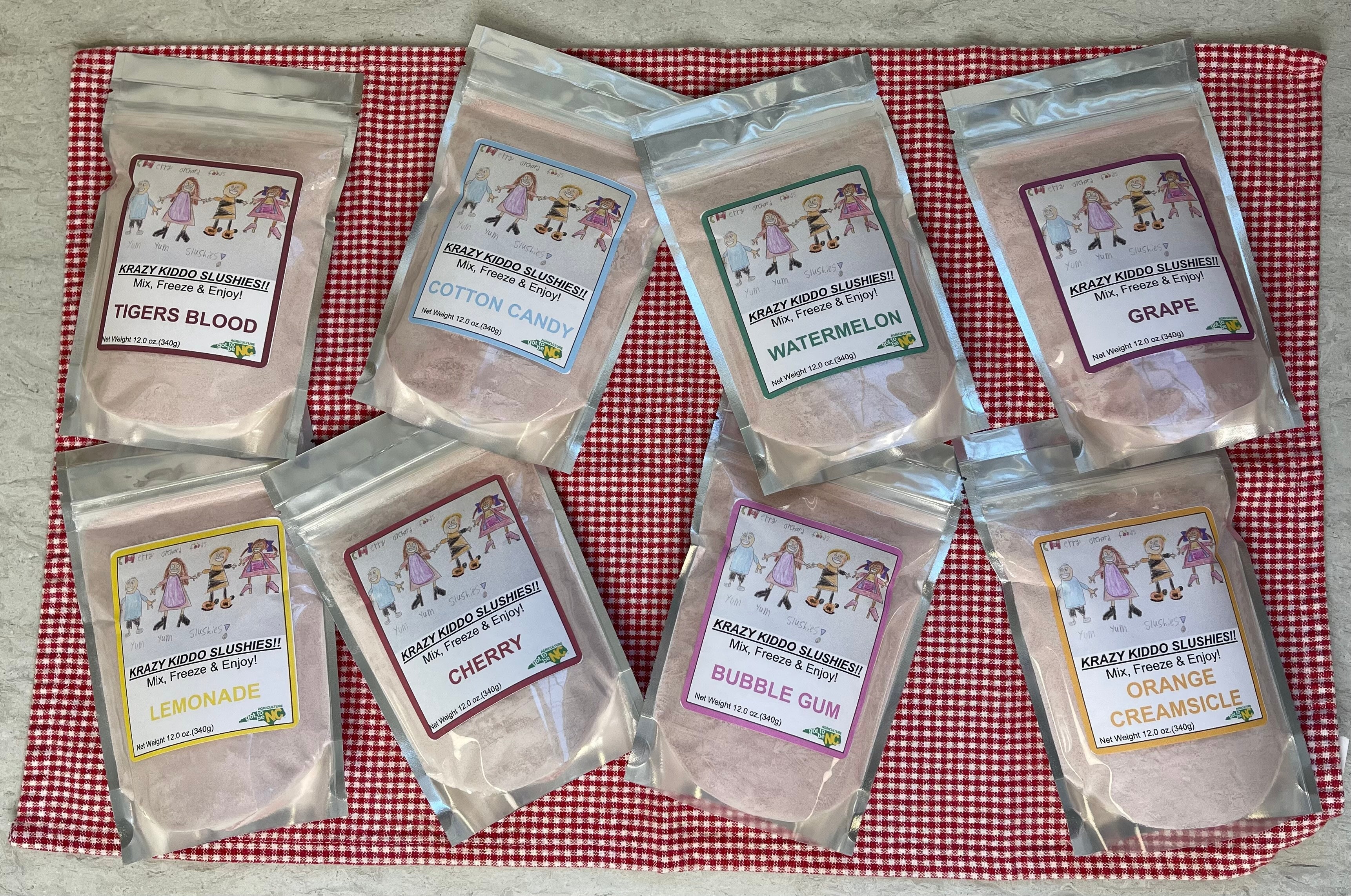 Our new Krazy Kiddo Slushie line of kids slushies are available in 8 different flavors at launch. We will be adding more flavors down the road.