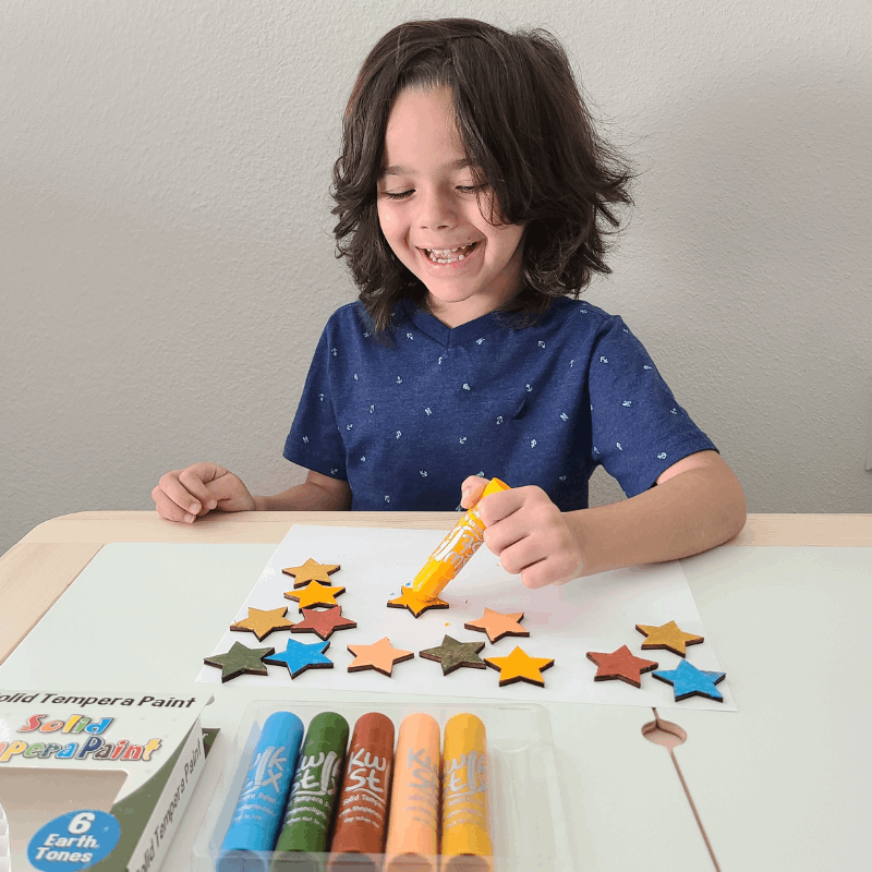 • Tempera Paint Sticks: Uncap, twist, and paint for mess-free fun!