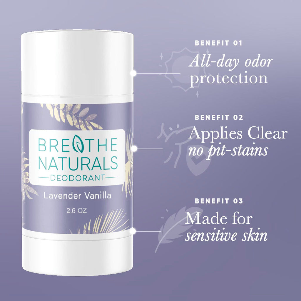 If you have sensitive skin, Breathe Naturals was made for people like you. We use Aloe Vera, Shea Butter, Vitamin E, and Elderberry to nourish and hydrate your underarms so you won’t get any rashes or irritation.