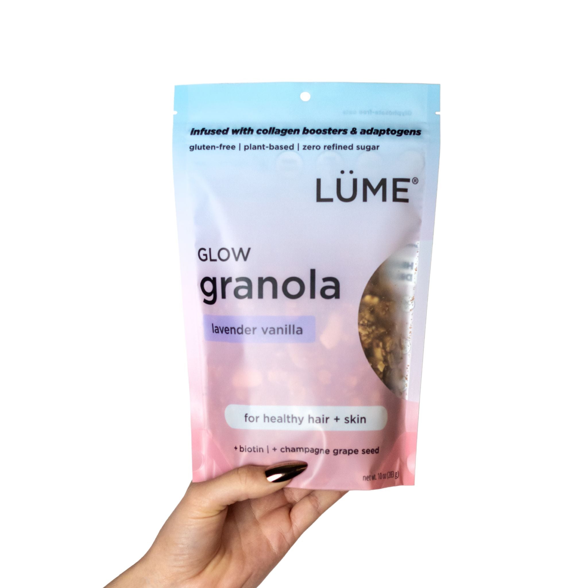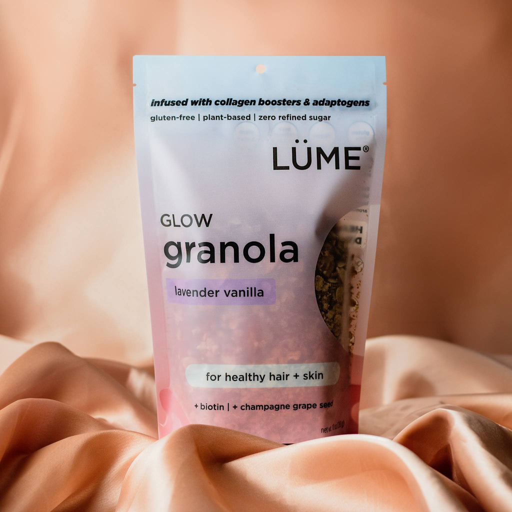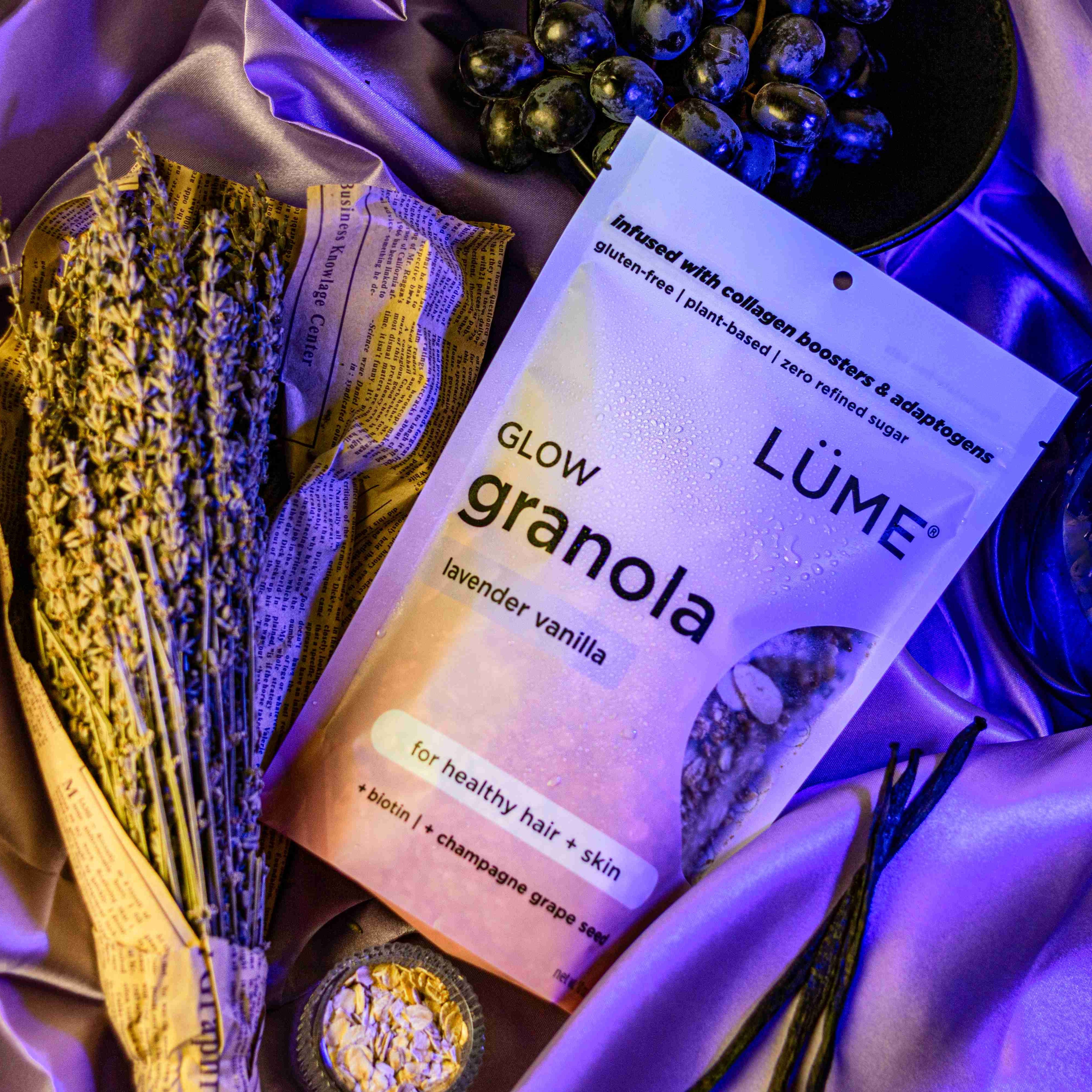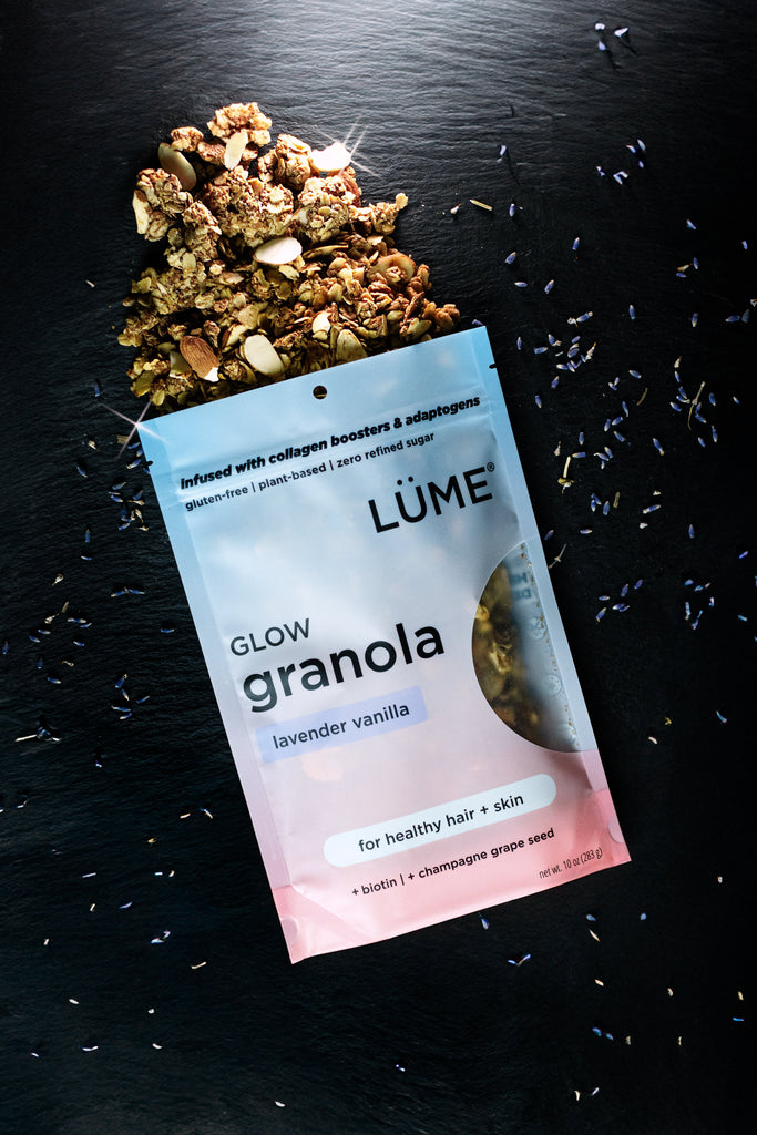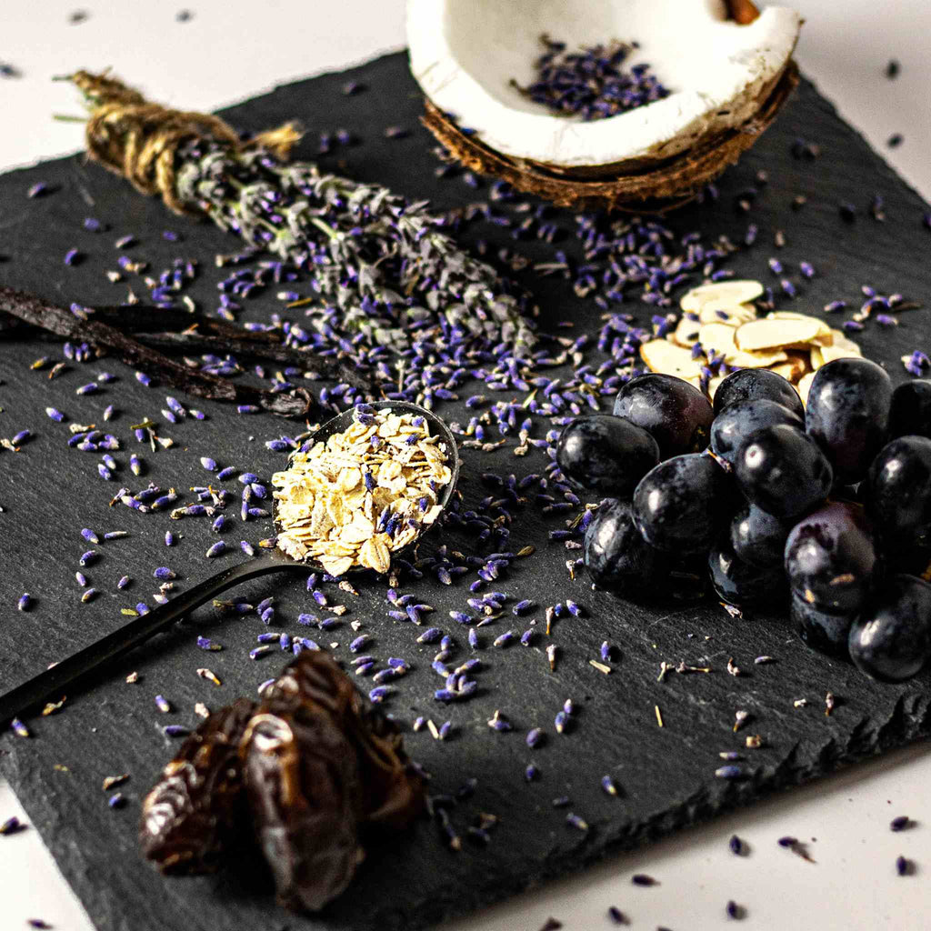Feel healthy & radiant with our light & delicate lavender granola. Infused with biotin & botanicals to support healthy hair and skin. Bourbon vanilla, fresh English lavender & medjool dates send your tastebuds to nirvana - it's your daily granola with benefits. Crunchy, aromatic, irresistible. Bite me 😏