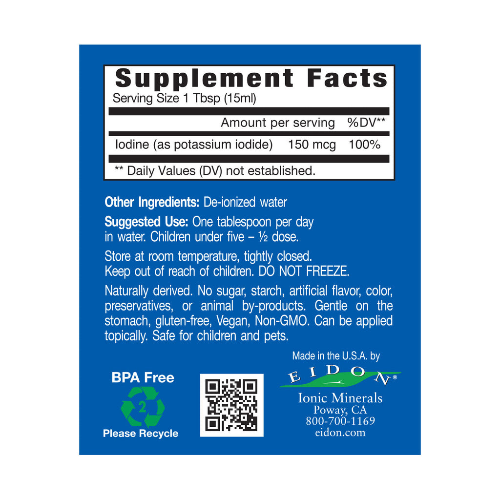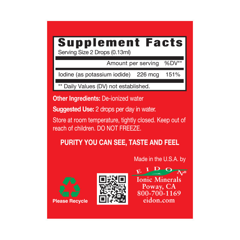About the concentrate: One drop of Eidon’s Liquid Iodine Concentrate is 75% of the US RDA. This gives you the ability to increase your dose to higher levels when necessary, and at a much more affordable price.