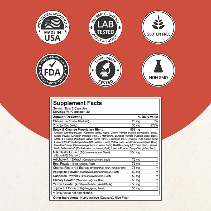 An antioxidant-rich formula that is power-packed with 20+ active detoxifiers, herbs, and botanicals to promote your liver health and keep it functioning at its best.*