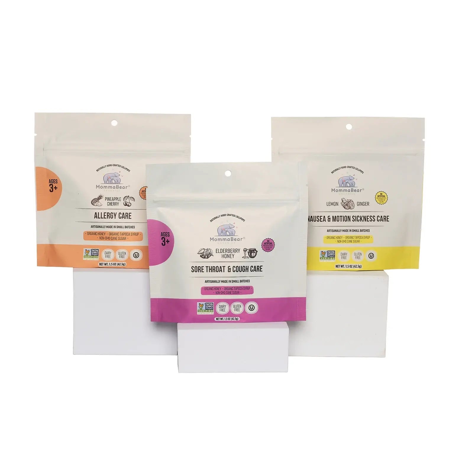 We know managing your symptoms can be overwhelming. Thats why we created our Immunity Bundle - get a 5 count bag of all three MommaBear Organics lollipops. Whether you experience nausea, allergies or sore throat, this bundle has you covered.
