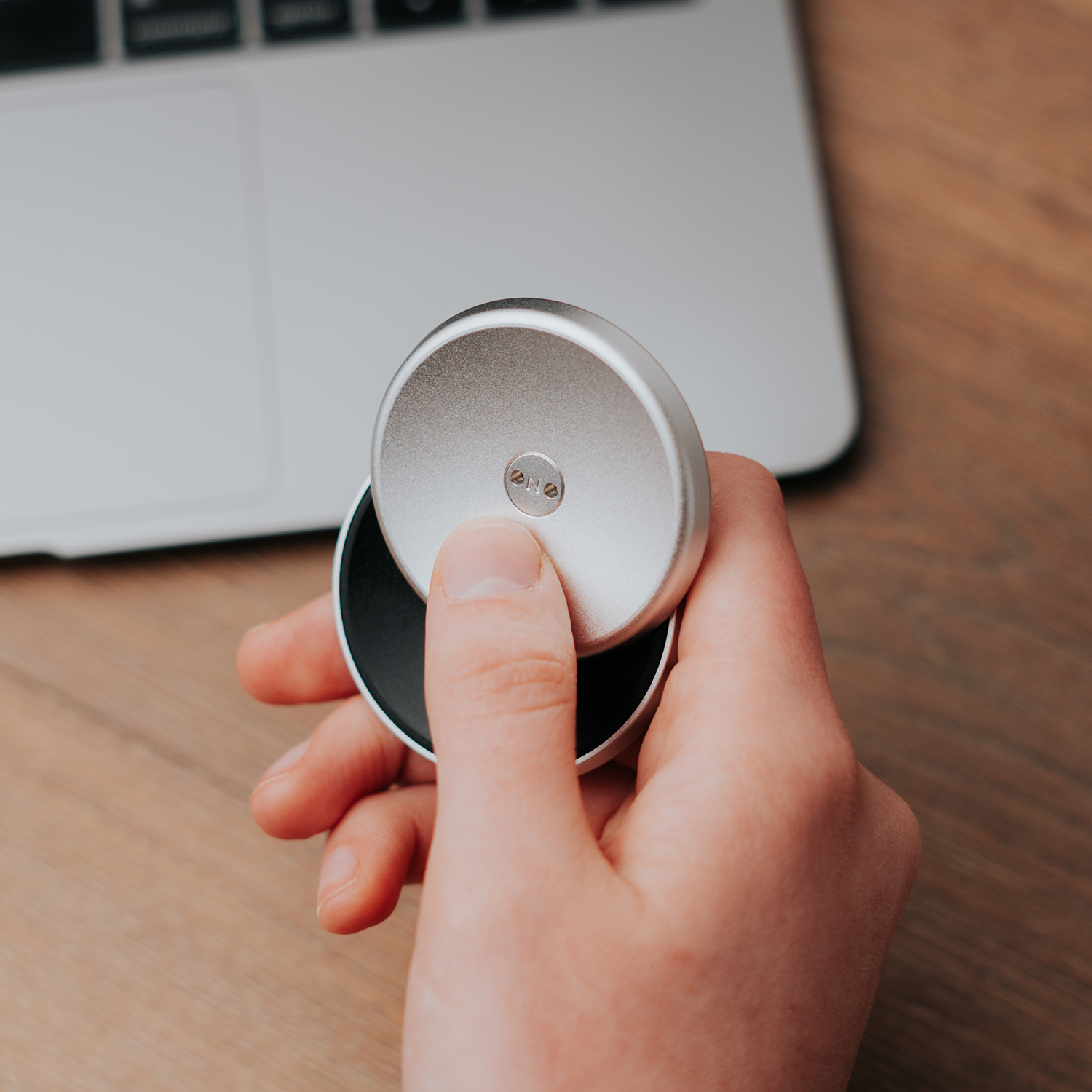 Inspired by the satisfying motion of shuffling two poker chips, the ONO Slider calms the mind and brings your attention to the present moment through an endless, circular motion of two sliding lightly magnetized disks. Concave in shape, the Slider is ergonomically designed to fit with your hands' natural range of motion.