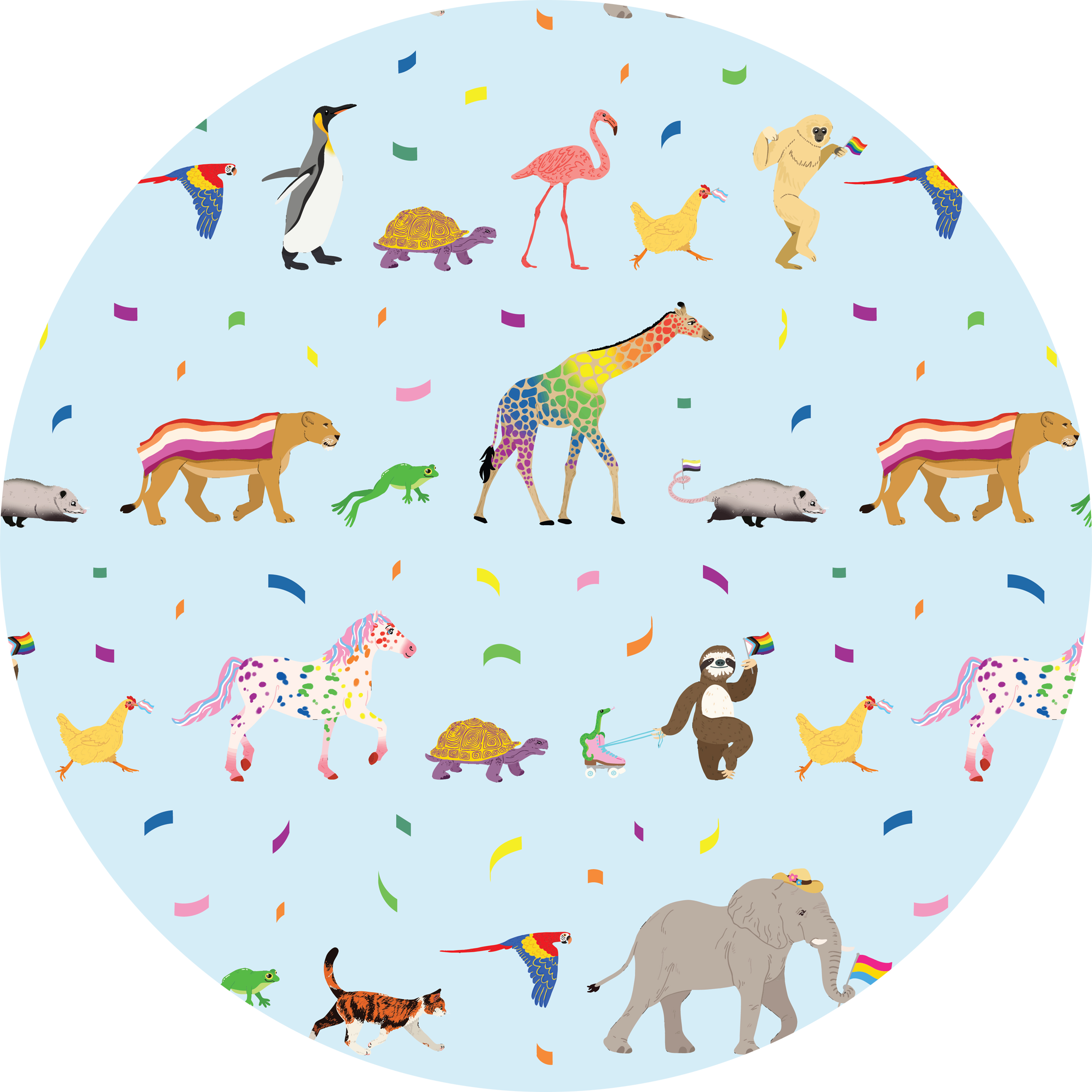 Popoki bamboo twirl dress with pockets features a soft blue background with the cutest animals marching in a parade to represent the LGBTQIA+ community. Perfect for pride month and all year long. Earth-friendly, hypoallergenic bamboo viscose extra gentle on sensitive and eczema-prone skin.