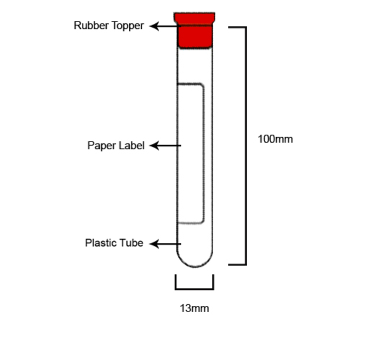 Description: Rubber Red Top 10ml, PET (Serum Tube Clot Activator)