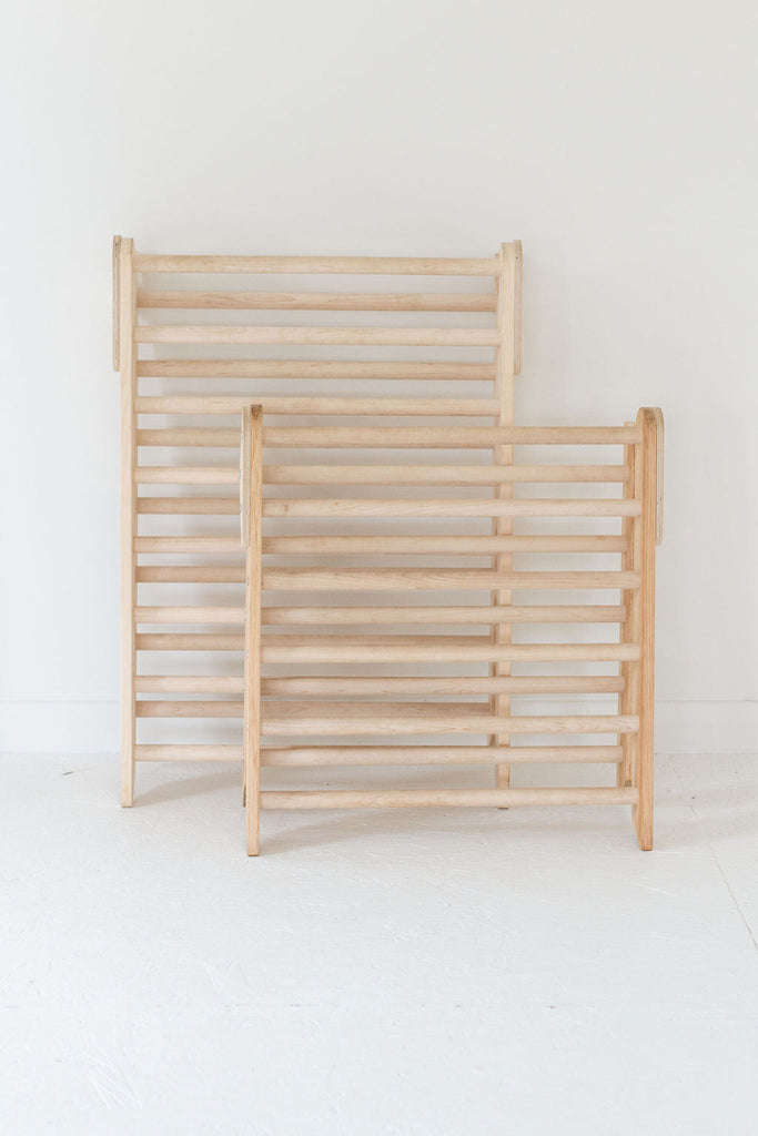 Made from high quality Pine and Birch wood, our wooden triangle can be folded up and carried from room to room, without the need of any tools, or turning any screws. Simply pick up, and push legs together. Our design is made so when fully opened, the Triangle supports itself, and stays open, and can easily hold 2 children at a time or an adult.