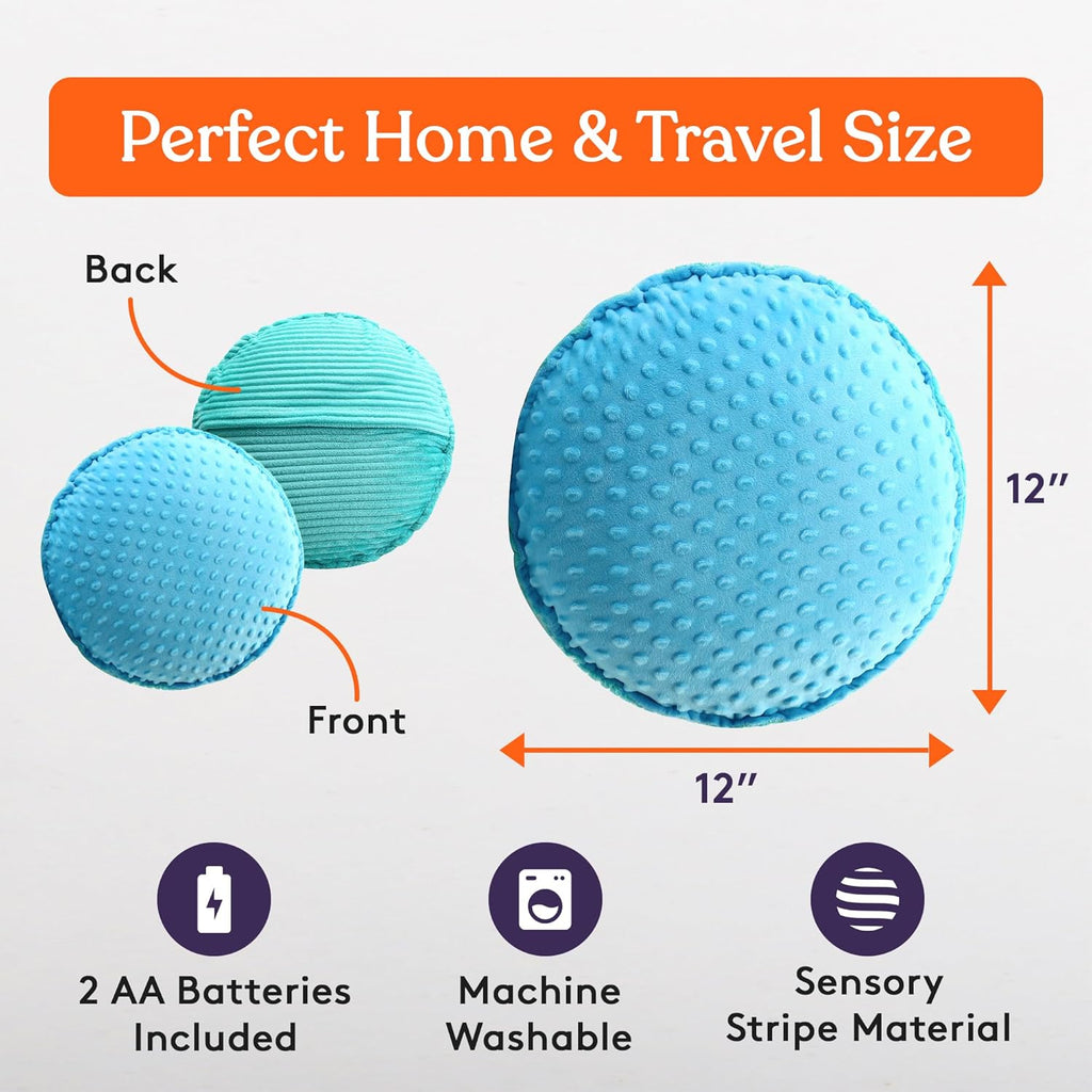 Special Supplies Vibrating Pillow Sensory Pressure Activated Calm for Kids and Adults, 14” Plush Soft Cover- Textured Therapy Stimulation Bumps, 3 Vibration Modes, Music & Voice Recording (Blue-Green)