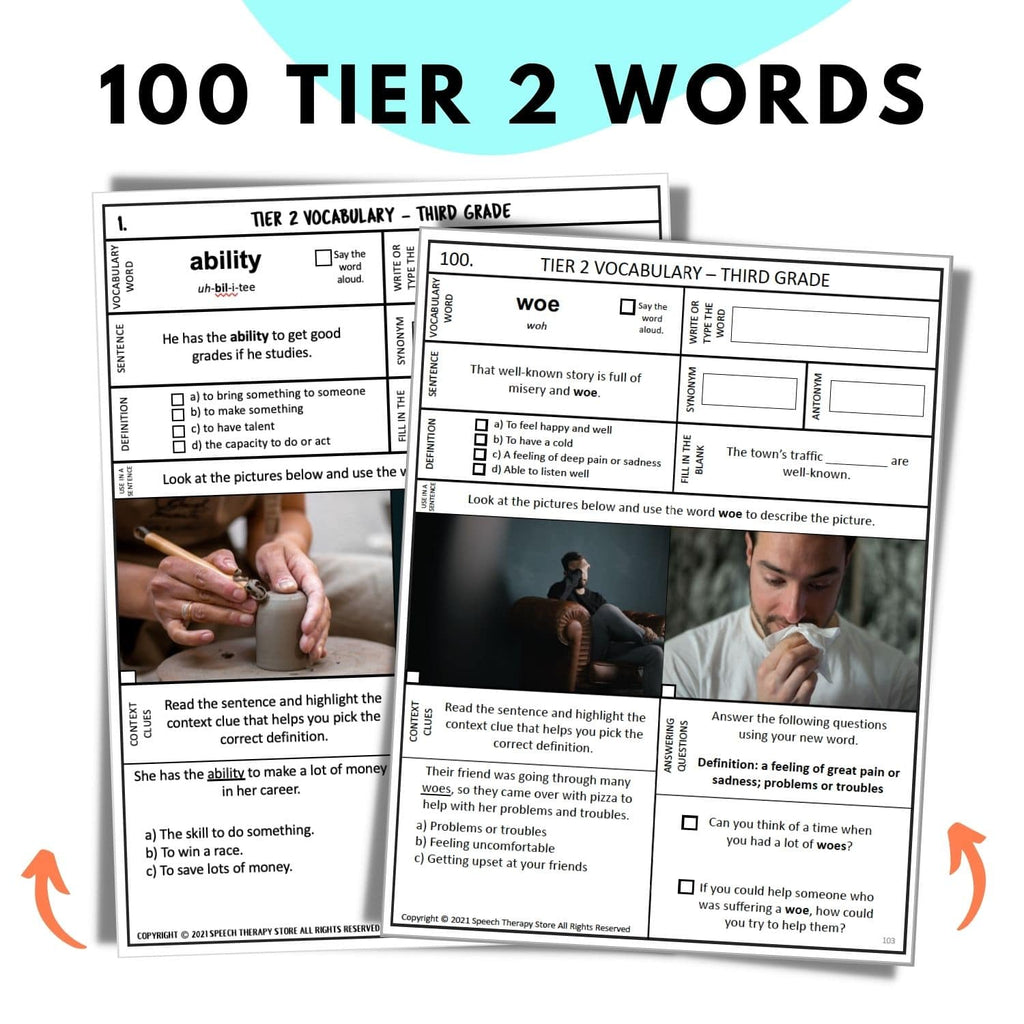 1. 100 Vocabulary Words: A total of 100 tier 2 words per grade.