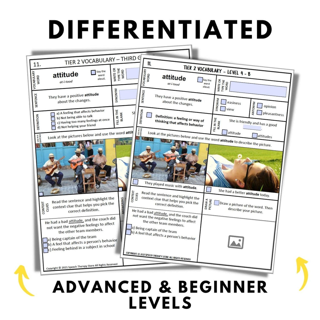 The bundle includes 3rd grade tier 2 vocabulary words and is differentiated at two different levels.