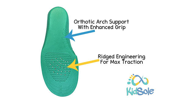 Our insoles are all designed with a contoured heel cup and arch support for growing feet.