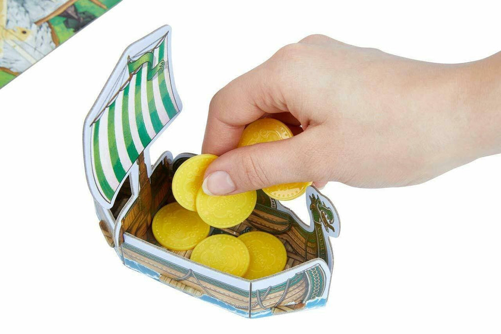With immersive game board, four 3D Viking ships and 24 gold coins this game brings excitement right through to the very end!