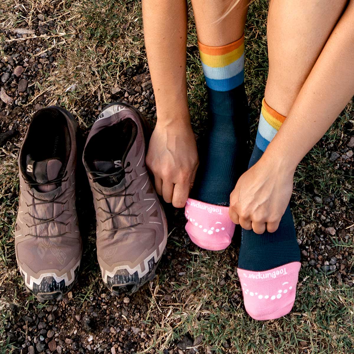 These Toe-Guard socks provide targeted front-of-foot cushioning and a secure, compression-style fit that helps reduce discomfort inside shoes. Originally designed for athletes, this style is also an excellent option for individuals who experience toe pressure or toe-walking, offering a soft protective barrier that absorbs impact and helps prevent irritation to the toes and toenails.