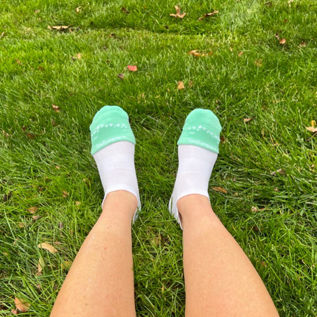These Toe-Guard socks provide targeted front-of-foot cushioning and a secure, compression-style fit that helps reduce discomfort inside shoes. Originally designed for athletes, this style is also an excellent option for individuals who experience toe pressure or toe-walking, offering a soft protective barrier that absorbs impact and helps prevent irritation to the toes and toenails.